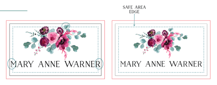Safe areas on your prints are 0.125 inches away from the edge of the trim line or 0.25 inches away from the bleed edge of your file. Anything outside of the safe area (or margin) is at risk of being trimmed off the final product or print. You always want to triple, or even quadruple check that all your artwork is within the designated safe areas.